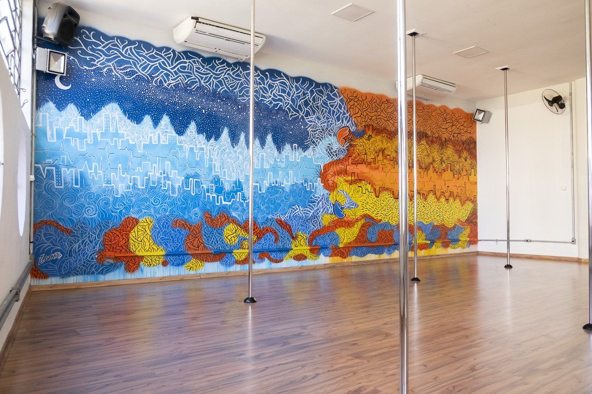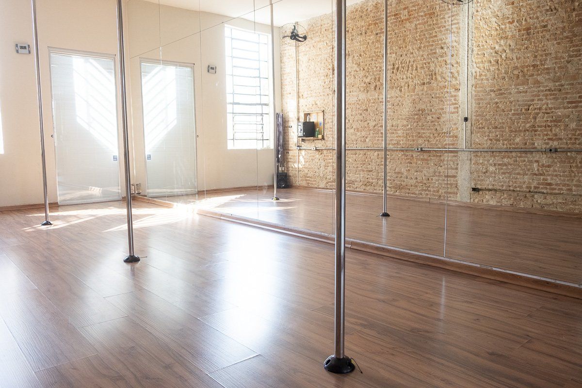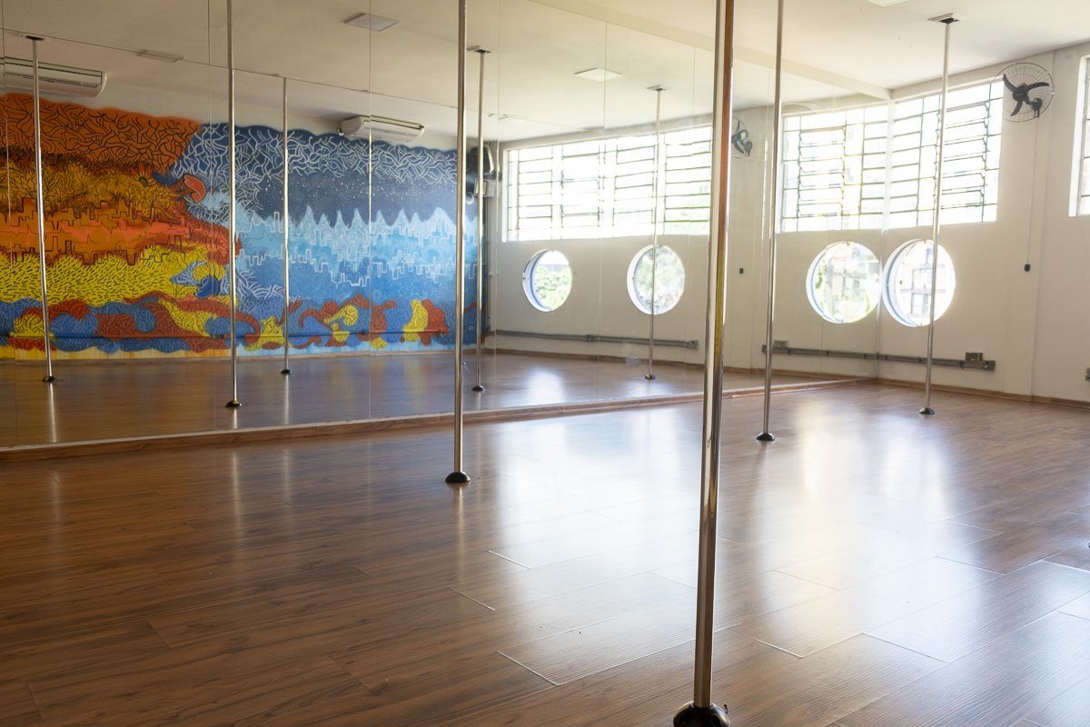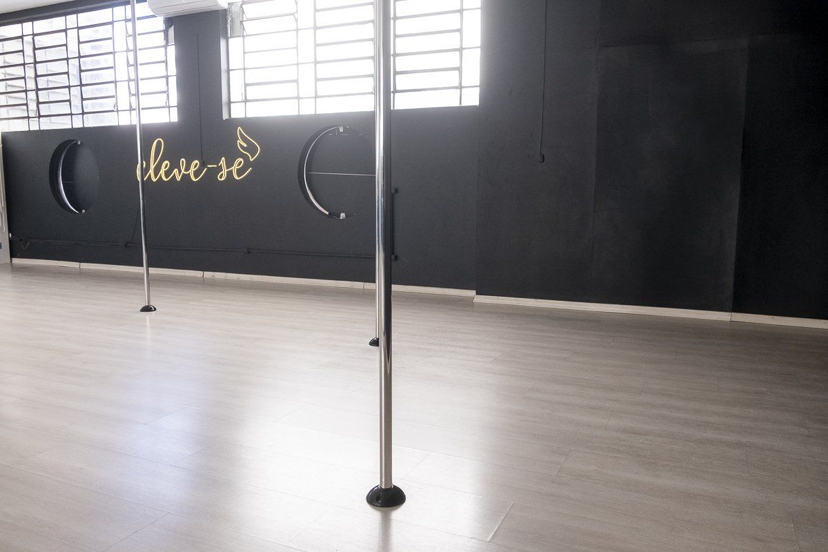 Nós temos 4 salas de pole dance, sendo a maior delas com 10 barras e com um total de 28 barras no studio todo. Todas as barras são fixas e giratórias, possuem 3,75m de altura e mais de 2,5m de distância entre elas, com espelho que acompanha todo o comprimento das barras, proporcionando visualização total dos movimentos realizados. As salas são climatizadas com ar-condicionado e o piso é de madeira flutuante, o que proporciona mais segurança e comodidade para alunos e instrutores. Contamos, também, com dois vestiários com armários, banheiro e chuveiro. Temos WI-FI e uma lojinha onde todos os acessórios necessários para a pratica de Pole Dance podem ser encontrados.
